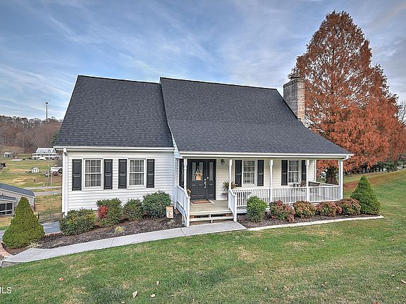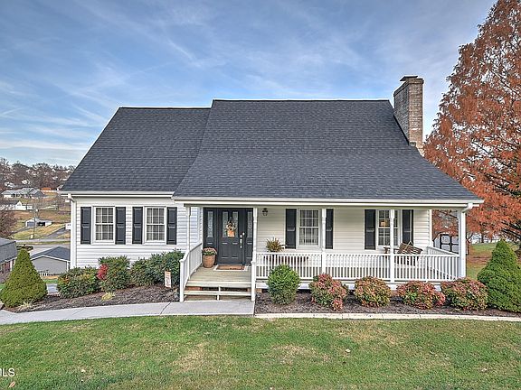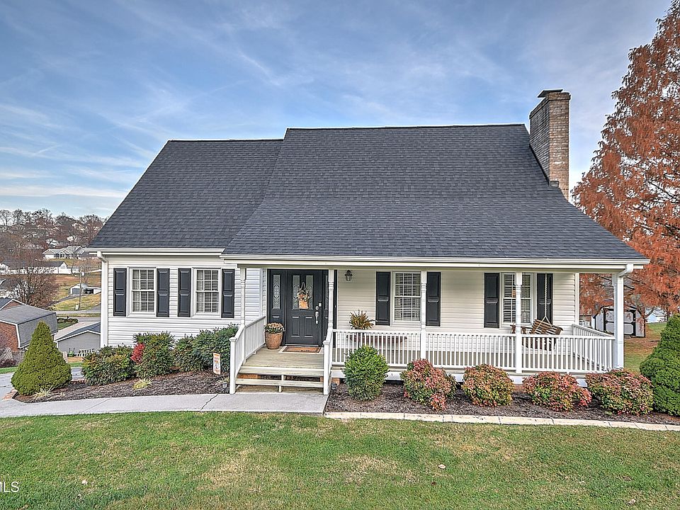 WELL MAINTAINED HOME with lovely views! At the end of the culdesac!!! Walk into this immaculate CAPE COD HOME with covered front porch and porch swing! MOVE IN READY! Great Kingsport City School district. There are 3 bedrooms with primary bedroom and bath suite on main level, laundry room, family room, large kitchen with granite counters, stainless appliances, ceramic flooring with coffee bar built in,. Nice living room with gas fireplace is very cozy. The outdoor entertaining space is great with screen porch and deck! Upper level has 2 bedrooms and bath with newer carpet. Lower level has den, office space and outdoor storage building! GREAT NEIGHBORS AND NEIGHBORHOOD, Very convenient city location