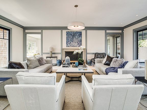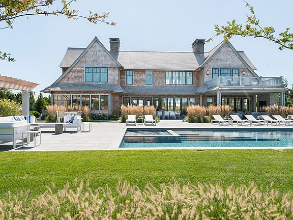 On the premier lane in Sagaponack South this impeccably crafted new estate from Michael Davis, the Hamptons' master builder for 30 years, expresses his English country-style sensibility perfectly blended with modern finishings. The unique location is surrounded by views of farm field reserves on three sides and ocean views from both first and second floors, enabling a sense of indoor and outdoor space, with the quintessential serene feeling of Sagaponack. Complemented by a thoughtful landscape plan, the elegant lines of the home draw the eye. Open light-filled interiors in a palette of muted grays, blues and pale white have a restful vibe, with fine precision millwork and expanses of glass doors and windows merging indoor and outdoor living spaces. Enter from the foyer to the great room with living room and fireplace, then flow to the family room with fireplace, dining area with custom wine wall, and chef's kitchen featuring custom paneled cabinetry, oversized island and professional grade appliances. The first floor includes a junior master suite with ocean views. The eight bedroom suites include the breathtaking master featuring a generous bedroom with fireplace, private ocean view terrace, sitting room, and his and hers closets and baths. In addition the rear deck off the master overlooks 43 acres of protected agricultural reserve and faces the sunset. Three additional bedroom suites complete the second floor. The finished lower level has three more bedroom suites, a media room, bar, additional bath, laundry room served by a laundry chute, with double washers and dryers, a second mudroom and storage space. An elevator serves all three levels. Outdoors enjoy living on the covered porch with TV and fireplace. Amenities include the heated 20' x 50' saltwater gunite pool with 8' x 8' spa with automatic cover, pool house with living area or gym and pergola, sunken all weather Deco Turf II tennis court and extensive bluestone terraces with a built-in barbecue. Home automation and Lutron low voltage lighting is throughout. All in all a home that has everything one could possibly wish for!