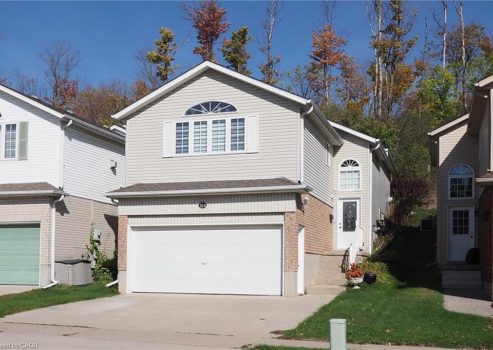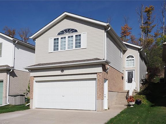Move right into this 3 bedroom raised bungalow in desirable Grand River North. Features include a DOUBLE GARAGE parking for 4 cars ,double concrete driveway unique split entry open concept layout. The kitchen and dinette are open to the great room highlighted by the vaulted ceiling with skylight, corner gas fireplace and hardwood floor. Spacious primary bedroom has vaulted ceiling, double closets and built-in drawer cabinets. Lower level offers NEWLY RENOVATED REC ROOM, brand new flooring and fresh paint. There is a 3pc bath, laundry and utility room. Separate entrance from garage to the basement allows for endless possibilities for potential in-law or the perfect retreat for older teens. Recent upgrades include Carrier gas furnace and heat pump 2022, newer front door and door to garage, roof 2014. NO REAR NEIGHBOUR'S TREED WOODLOT IN BEHIND. Walk-out to the backyard deck, natural gas hook up for those summer BBQ'S. Great location for young families, park right across the road, handy to the Walter Bean Trail and Grand River. Easy commute to Guelph, Cambridge 401 commuter connection. This home is move in ready immediate possession is available. Call your Agent today to view.