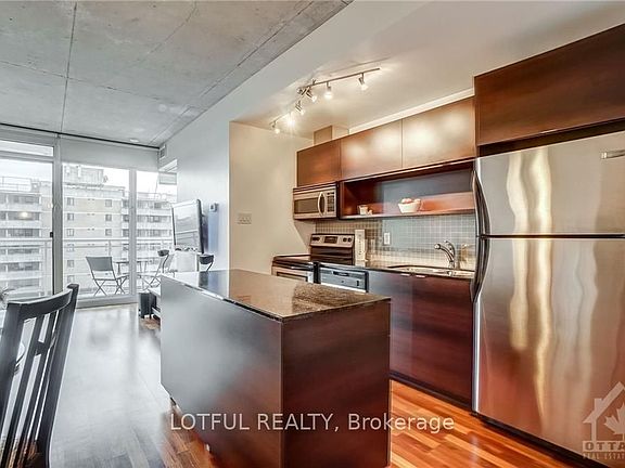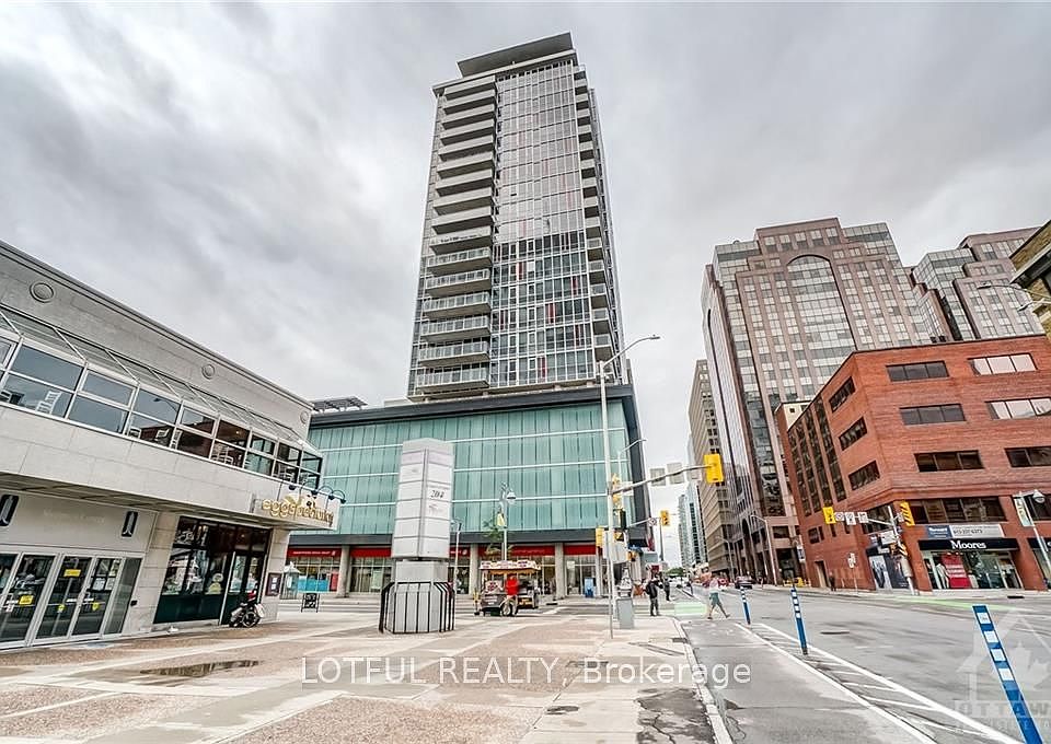 Welcome to this bright and spacious 1 BED + DEN (with a murphy bed) Amazing views looking south on bank. End unit. Close to everything including the Offices, Market, Parliament Hill, shopping, restaurants, and entertainment! Steps from your lobby is the life style you always imagined. Large floor-to-ceiling windows across the entire side of the structure, there is no shortage of natural light. The tall 9ft exposed concrete ceilings make this unit modern and stylish. Incorporated in the primary bedroom are overhead remote controlled theatre lighting. Second bedroom/ den is equipped with a comfy and compact murphy bed, included. Perfect for working and studying from home. Views are incredible and can be enjoyed on the enormous 21ft balcony. building amenities include exercise room, outdoor pool, party room, community BBQ and much more! Pictures are from previous listing