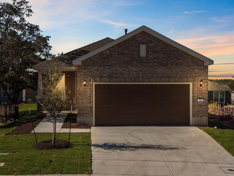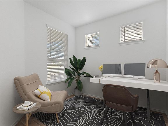 Move-In Ready Contour Floor Plan – Never Lived In! This beautiful 2-bedroom, 2-bath home with a flex room is move-in ready and has never been lived in. The kitchen features white upgraded cabinets with elegant hardware, quartz countertops, and easy roll-out drawers in the lower cabinets. Enjoy continuous wood-look tile flooring throughout for a seamless and stylish look. Both bathrooms offer upgraded cabinets, quartz countertops, and beautiful fixtures. Additional highlights include ceiling fans, a 4' extended garage, plumbed for water softener, and an extended patio—perfect for relaxing or entertaining. Situated on a corner lot with a lovely large oak tree adding shade and character. Located in a 55+ community featuring 3 golf courses, 4 fitness centers, and much more! Please see the download page for SD and list of upgrades.