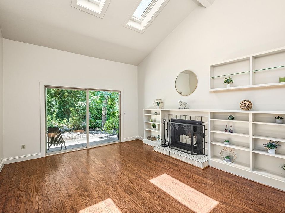 This desirable end-unit condo with cathedral ceilings is located in arguably the best location in Villa Los Alamos, tucked alongside Santa Rosa Creek at the back of the complex. Walk right out your front door to a sprawling green lawn adorned with a mature Magnolia tree on your way to a leisurely walk along the creek path, which runs the entire length of the complex, down to the pool area with sundeck and clubhouse. Enjoy the beautifully landscaped grounds from your 2 private patios. The kitchen has been upgraded with stone counter tops and recessed lighting. Huge attic with folding-stair access in the hallway is great for additional storage and provides a unique opportunity to increase your square footage by creating a loft area in the front bedroom. This is the unit you have been waiting for!