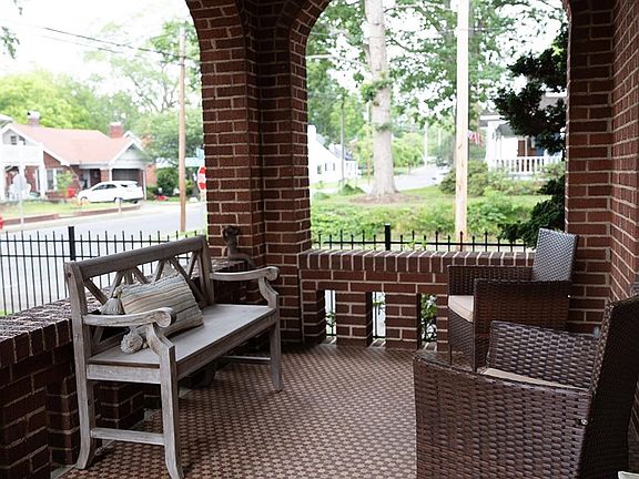 Gorgeous brick home blending timeless character with tasteful updates! This 4-bedroom, 2-bath home features refinished hardwood floors and original doors with glass knobs. A spacious living room and formal dining room lead to a custom kitchen complete with handcrafted cabinetry, walk-in pantry and distinctive brick flooring. Upstairs offers generous bedrooms, a study, a convenient laundry closet, and easy attic access for added storage. Remodeled bathrooms, updated electrical and plumbing, and a new upstairs HVAC unit are just some of the upgrades this home boasts. Enjoy cozy built-ins in the library, a screened-in porch, and a fenced yard perfect for entertaining. Outdoor upgrades include a new 2 car carport, back deck, patio with fireplace and grill enclosure, new gutters, and painted windows and trim. Just minutes from downtown shopping, dining, and entertainment. This beautiful home is a rare blend of historic charm and contemporary living!