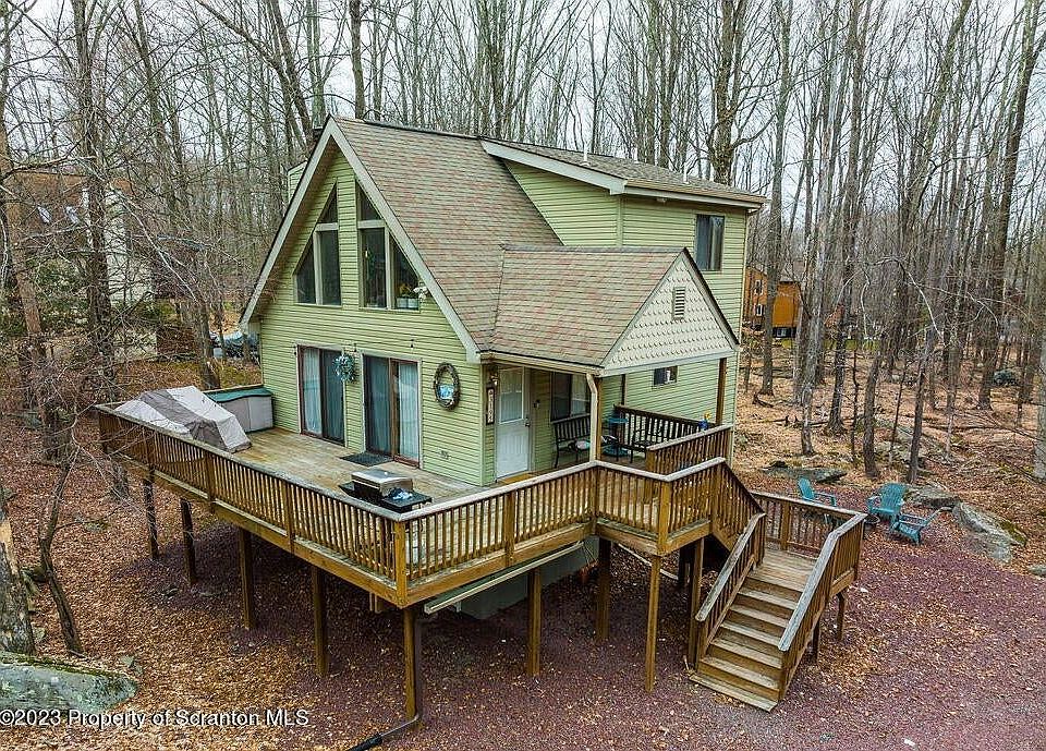 WOW! Beautiful Chalet home located on the quiet side of Northgate Road near clubhouse, golf course, indoor sports complex, pool and tennis courts, and ski slopes. Nicely and tastefully updated turnkey chalet designed for the best in comfortable Pocono living. Offers luxury vinyl plank flooring and charming accents that make this the perfect getaway in the mountains. Light and bright! Open kitchen, Living room, 5 Bedrooms and 3 bathrooms, family room and cathedral ceiling and wood burning fireplace. The Hideout is a gated, amenity-filled community in the Northern Poconos. Come take a look, you will not be disappointed!, Baths: 1 Bath Lev 2,2+ Bath Lev 1, Beds: 2+ Bed 1st,1 Bed 2nd,2+ Bed LL, SqFt Fin - Main: 672.00, SqFt Fin - 3rd: 0.00, Tax Information: Available, Dining Area: Y, SqFt Fin - 2nd: 390.00