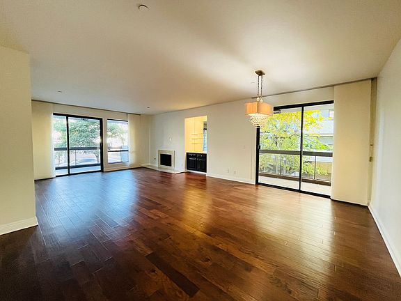 As you walk through the entrance of this spacious condominium, you be pleasantly surprised! There are wood floors, recessed and track lighting throughout. The living room is generously sized with a romantic fireplace. There is also a built-in cabinet with shelves that can be used as a mini bar or for displaying your precious artwork. The living room opens to private balcony, great for relaxing or entertaining. The dining area also opens to a private balcony, a great place for taking in your morning tea. It also includes a custom chandelier. The galley kitchen includes a stainless-steel fridge with dual doors, stainless steel dishwasher, stove top, wall oven, side by side washer and dryer with amazing cabinet and counter space. The master suite opens to a Romeo & Juliet balcony. There is a large walk-in closet and two additional closets with sliding mirrored doors. The ensuite bath includes dual sinks, a standing shower and a relaxing deep soak tub! The 2nd bedroom is also nicely sized and also includes a spacious closet with sliding mirrored doors. The guest bathroom is located in the hallway, it has custom cabinetry and a standing shower. This Beverly Hills community has a roof-top deck and fitness center to boot! It is centrally located and minutes to Rodeo Drive, West Hollywood, the Beverly Center, Beverly Grove, shopping, restaurants and much more! Terms: One-year minimum lease. Security deposit equal to one month's rent on approved credit.