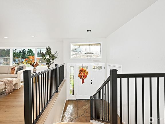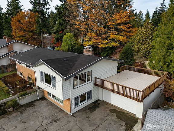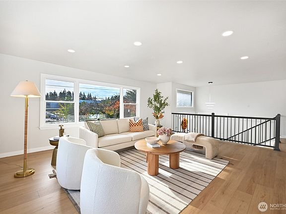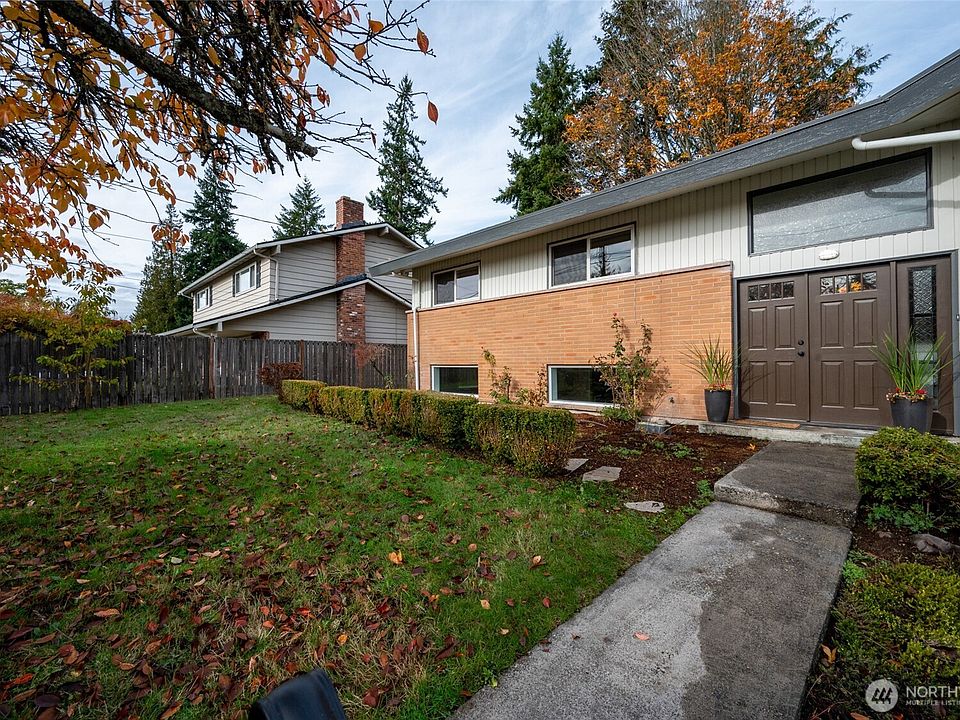 Elevated updates, lots of space, and a prime location: Updated Mid-Century Modern on a large lot across from Albert Einstein MS. This 3,520SF spacious home offers both style and function. Upper floor has beautifully updated kitchen and baths with new cabinets, carrera quartz counters, glass enclosures, fresh paint, and engineered flooring. Generous dining room opens to a patio & large deck, great for entertaining. Downstairs includes spacious rec room and bonus room, generous laundry room, shop/utility room, and a 5th bedroom/den with en-suite bath. Wide driveway w/5–6 vehicle parking, RV/Boat parking, plus a newly enclosed, 2-car attached garage - yes permitted! Enjoy proximity to shopping, dining, parks, Lt rail and top-rated schools.