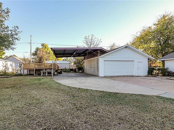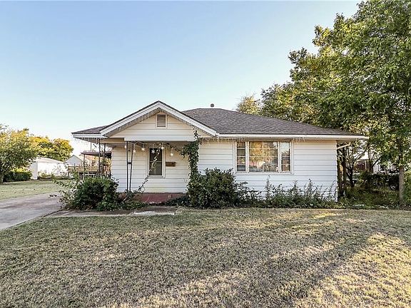 Make this house in the historical "Old Town Moore" your new home! Situated on over a quarter acre (.36 acres) you'll have plenty of space to make it your own. Home features over 1,800 sq. ft. with one of the three bedrooms located upstairs with its own full bathroom, a beautiful wood burning fireplace in the large living room, huge indoor laundry room and a small basement located under the dining area for added storage. The majority of windows throughout the house are newer. Outdoor features include a lean-to with RV parking, extended driveway for extra parking, oversized 2-car detached garage easily fits two cars PLUS plenty of room left for storage. 8-person storm shelter (installed 2017) located in garage floor. This home has only had 2 owners, it sits on a quiet street w/ easy access to I-35, Moore Library, Moore Community Center and is within walking distance to Central Elementary School & Central Junior High. Put your own personal touches & make it yours!