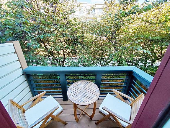 The first floor includes a 2-car garage as well as key fob access to the front door on the second level. As you step through the front door you are greeted by natural light as well as an open-concept large living room and kitchen with high ceilings and a half bath. Off the second floor is a quaint balcony overlooking the rail trail through the gorgeous trees. Both bedrooms on the third floor include private bathrooms as well as a walk-in closet in the primary suite. Washer & dryer included.