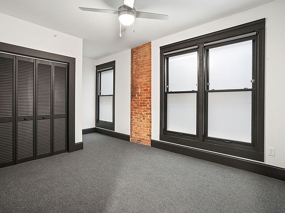Unit 301 is a lovely 1BR/1BA top floor unit with large window affording bright sunshine. Includes in cable & internet, unit washer/dryer, solid surface countertops, original hardwood floors, stainless steel appliances, high ceilings, exposed brick, central air and an option for monthly parking in the lot behind the building. Some units have fireplaces!