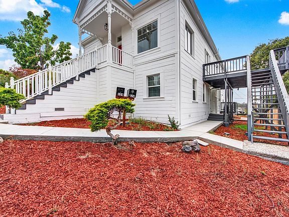 This home is in the historic district of Vallejo and offers space for everyone. The main house is approx.2520 sqft and the attached private unit is approx. 800sqft. The main house offers spectacular views from 2 large balconies-one off of the enormous primary bedroom and another one by the kitchen. You'll find 4 bedrooms, 2 full bathrooms, kitchen with never used appliances, dining area, living room, indoor laundry plus a very big deep garage with a high ceiling and additional laundry hook ups. The extra large room downstairs could be used as a theater/game room/art studio or play area-you decide, the uses are limitless. The entire property has been painted inside and out. Canned lights and beautiful quartz counters have been installed throughout, plus both water heaters have been replaced. There is plenty of storage space all around. The private suite provides a great solution for multi generational living, rental income or guest accommodations and comes with a living room, 1 full bathroom, a kitchen with never used appliances, and 3 bedrooms or you could turn one of the bedrooms into an office. Close to shopping, schools, Touro University, parks, Farmers Market and the ferry at the Vallejo Waterfront-THIS PROPERTY IS MOVE IN READY AND TRULY A MUST SEE!