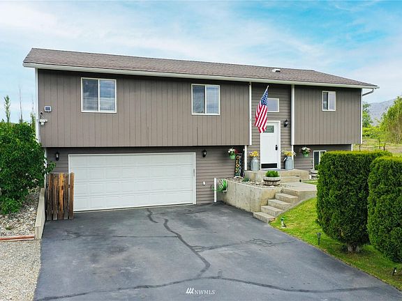 Wonderfully kept & updated 3 bed/2.5 bath Omak Flats split level home with all the charm you have been looking for. On the main floor is the semi open concept living, dining & kitchen w/ sliding door to deck & new hot tub. This kitchen will have you in awe with new high end appliances, lots of cabinet space, & the island. The primary bedroom is also on this level w/ updated en suite bath, 2 bedrooms, & full bath. Lower floor has office space, laundry room, 1/2 bath, bonus space (currently used as non conforming bedroom), & attached garage. Outside has large paved driveway, tons of landscaping, sprinkler system, garden shed on cement, & fire pit. All of this on county maintained road in highly desirable community only minutes from town!!!