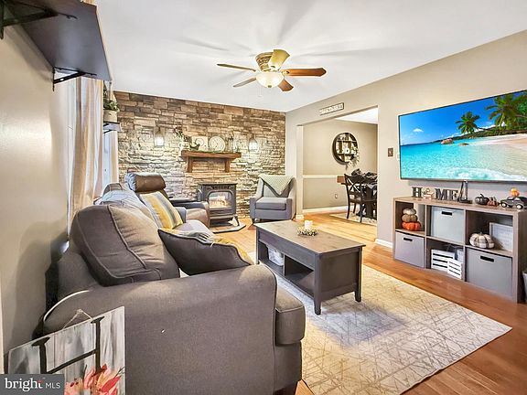 Experience pride of ownership in this beautifully updated home! The spacious living room, with three large sun-filled windows, welcomes you with a custom stone accent wall and an energy-efficient wood pellet stove—ideal for cozy evenings without worry for family and pets. The open floor plan flows effortlessly from the living room to the dining area, connecting seamlessly to the kitchen, which boasts custom Canaan cabinets, stunning Silestone quartz countertops, stylish pendant lighting, and sleek stainless steel appliances. A breakfast bar and sliding glass doors lead to a spacious deck, perfect for entertaining.