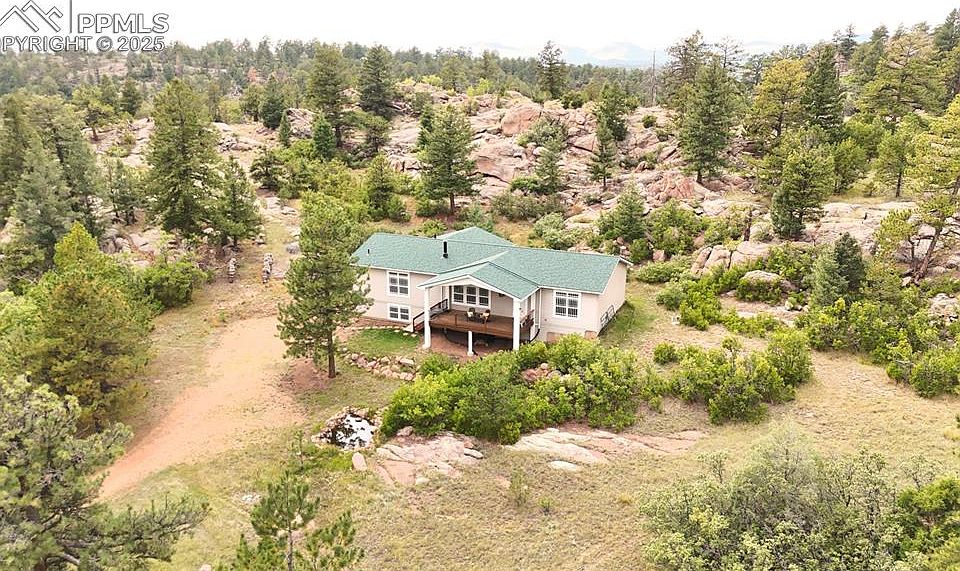 Tranquility abounds here at the Pike View lane Hideaway! Wonderful mountain home oasis with new roof surrounded by lush pastures, plentiful aspen and pine trees along with incredible rock outcroppings, on 19.89 acres with new roof! Fall in love with this homes fantastic open concept layout boasting 3 spacious bedrooms and 2 baths. The primary suite has a walk in closet, a separate toilet closet, shower, double sinks and is separated by the main living spaces from the 2nd bath and additional 2 bedrooms. Large laundry room is well appointed with storage cabinets and utility sink. You will enjoy this meticulously maintained Hickory home with tons of sparkling natural light, made by Chief Custom Homes. The spacious kitchen can seat many at the eat in bar, the barstools can stay. Additional furniture can stay as well, such as the living room couch, loveseat and lazy boy, all beds, dressers and lamps! You'll love the beautiful front and back pastures, both intertwined with incredible rock outcroppings and your very own hiking trail. Located on a dead end road in Bear Trap Ranch, with a mix of rich terrain with an easy, almost level driveway. Relax on the fabulous front deck with serene views overlooking a pond with aquatic life. Sing your heart out on the back porch 'Amphitheatre' with just the birds and deer as your audience. Enjoy the additional workshop cave in the basement for your projects. Security bars give peace of mind for out of state or absent 2nd home owners. The backup/emergency solar system is in place to be hooked up when needed along with a reserve water tank, both will put your mind at ease. Septic access for RV near Driveway. Fantastic everyday or getaway cabin also has excellent short term rental potential. Fabulous trails for your hiking, biking and horseback riding enjoyment. Come own this piece of paradise for yourself today!