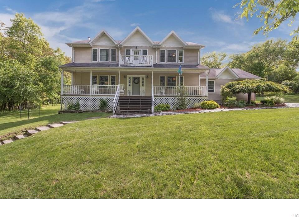 You'll LOVE this beautiful classic country colonial sitting perfectly on a sprawling, level property with scenic views and tasteful landscaping. The kitchen features stainless steel appliances, granite counter tops and eat-in breakfast area. It walks out onto a lovely, two-tiered partially covered back deck. The master bedroom has it's own private balcony, master bathroom with tub and shower and an enormous walk-in closet. There are three additional bright and spacious bedrooms on the second level. They all share a full bathroom of their own. Sit under the covered rocking chair front porch and ENJOY! tThe landscaping also includes a large storage shed with electric. Sit. Relax, as you gaze over the custom-built stone coy pond. Two car garage just outside the kitchen and pantry. There is a finished storage area in the walk-out basement. Easy commute to NYC. Don't miss it!