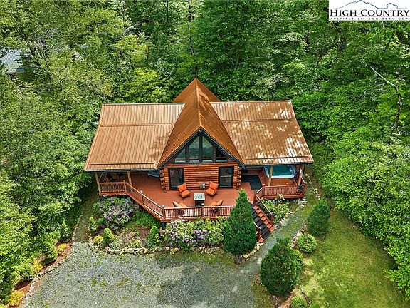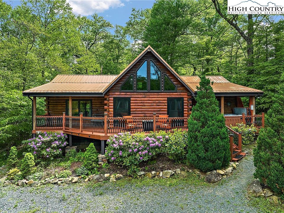 Welcome to your idyllic log cabin mountain retreat nestled in the serene beauty of Sugar Mountain. This charming log cabin invites you to settle in and relax, and enjoy a tranquil escape from everyday life. As you step onto the spacious deck, take a moment to breathe in the crisp mountain air and take in the breathtaking serenity while enjoying a chorus of birds singing in the surrounding forests. Whether you're enjoying your morning coffee or unwinding with a glass of wine in the hot tub, this is the perfect spot to reconnect with nature and rejuvenate your spirit. Inside, the cozy living area invites you to relax by the warm glow of the fireplace, where you can curl up with a good book or gather with loved ones for lively conversation. The fully equipped eat in kitchen boasts modern appliances and plenty of storage for everything you need for extended stays or even full time living. After a day of outdoor adventures, retire to one of the comfortable bedrooms, with plenty of space to accommodate family and friends, everyone will feel right at home in this inviting mountain retreat. The sleeping loft (not counted in square footage) provides a bonus space for extra guests and boasts the best views in the house. Conveniently located near a variety of outdoor activities, including hiking (there is even a hiking trail at the end of this dead end road!), skiing, mountain biking, and golfing, this cabin offers endless opportunities for adventure in every season. Whether you're seeking thrills on the slopes, exploring scenic trails, or simply taking in the natural beauty of the mountains, Sugar Mountain has something for everyone. This cabin comes fully furnished and turn key; bring your suitcase and start living your mountain dream! It has made an excellent rental property and has even more potential yet to be realized!