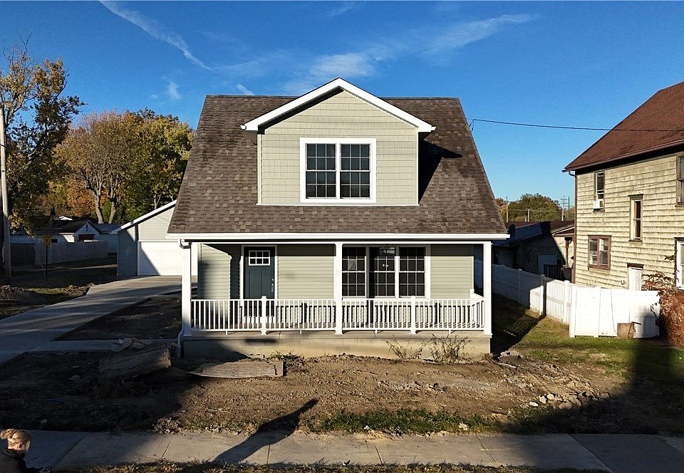 This newly constructed 1,509 square foot, three-bedroom, two and one-half bathroom home features a sprawling front porch, spacious open concept living, dining, and kitchen area, first-floor laundry, second-floor master suite, and a detached two-car garage. The full basement is both waterproofed and insulated. Refrigerator, range, microwave range hood, dishwasher, washer, and dryer are included with purchase.