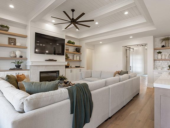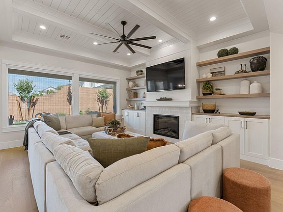 This stunning home, in the Red Mesa Subdivision boasts 9 foot ceilings throughout, creating an open and spacious feel in every room. You'll love the abundance of natural light streaming through the oversized, cased windows, enhanced with elegant plantation shutters and electric blinds on the rear-facing windows for added convenience. The interior features beautiful wood flooring, full suite of GE Cafe kitchen appliances, and the refrigerator is included. A water softener and epoxied garage floor. Step outside to unwind in the private hot tub, surrounded by a fully landscaped yard complete with block walls, iron gates, artificial turf, and additional mature plants for added charm. Low maintenance paver driveway and patio.