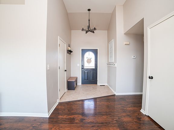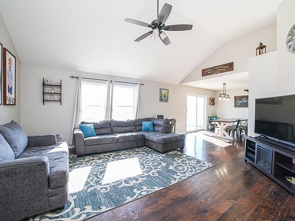 Welcome Home to your beautifully updated, move-in ready, 3 bedroom 2 bath ranch home in Manteno! You'll love the spacious feeling you get as you walk into your living room with vaulted ceilings that opens up to your large dining area and updated kitchen with pantry. The seemless flow of the gorgeous wood laminate floors gives the home a luxurious and modern feel and extends down the hall to 2 nice-size bedrooms, a full bath, and Primary Master Suite with another full bath and walk-in closet. In addition to the 2 car attached garage, the full unfinished basement provides plenty of extra space with endless possibilities. The large backyard boasts a cement patio and dog run. Don't have a dog? It would make the perfect location for an enclosed garden! Updates to the home include laminate flooring throughout the main floor and carpeting in the bedrooms in 2018, new stove and microwave in 2020, new roof, granite countertops, sliding door, and storm doors in 2023.