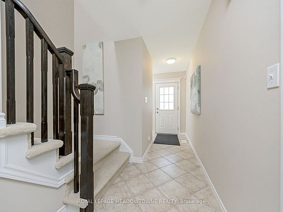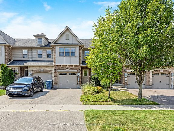 Completely Freehold! Offers Anytime. Enjoy rare privacy with no neighbours in front or behind - just a park across the street and peaceful green space at the back. This bright and well-kept two-story townhome is in a quiet, family-friendly neighbourhood and offers comfort, space, and an unbeatable location. The open-concept main floor is perfect for both daily living and entertaining. The kitchen includes stainless steel appliances, a pantry for extra storage, a functional island with seating, and ample cupboard space. The living and dining areas are filled with natural light from large windows, and sliding doors open to a backyard deck with tranquil views. Upstairs, the spacious main bedroom has a walk-in closet and direct access to the shared four-piece bathroom. Two more bedrooms offer room for family, guests, or a home office. The finished basement provides a flexible recreation space and includes a rough-in for a future bathroom. Outside, relax on the deck overlooking mature trees and green space, or take advantage of the park right across the street. With direct garage entry, low-maintenance landscaping, and close proximity to schools, shopping, and transit, this move-in ready home blends convenience, privacy, and a great setting.