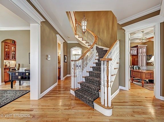 DOWNTOWN NAPERVILLE LIVING AT ITS FINEST! Just blocks to the River Walk, shopping, dining, the train & the great Dist. 203 schools! The traditional & timeless design offers comfort & class & with an open floor plan for easy entertaining. Dramatic volume ceilings, crown moldings, superb windows, hardwood floors & 3 gas FPLS! You will love the chef's inspired kitchen w/Viking, Bosch & Sub-Zero high-end appliances, Romar cabinetry, under-cabinet task lighting & granite topped seating w/ room for six. The southern exposure from the kitchen, breakfast room & family room overlooks a fabulous paver patio, colorful gardens, water feature, multiple seating areas & access to the 3+car garage on the quiet alley. The fabulous master bedroom suite includes a luxurious master bath w/ large steam shower & jet tub. The fin. lower level/bsmt offers a 3rd FP, a media center, game rm, exerc, bar, full bath & wine closet. Intelligently sized & customized throughout. All BRS offer ensuite bath access.