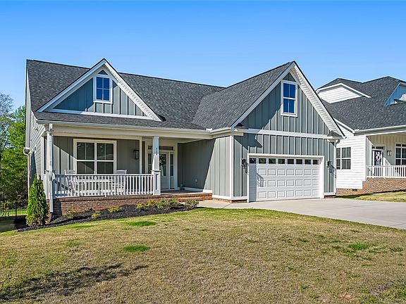 RARE opportunity to own a 4 bed, 3 bath, 2300+ SF home on over half an acre in the highly sought-after Walker’s Pointe—a community known for its large lots, upscale finishes, and no city taxes, all without sacrificing convenience. This home oozes curb appeal with a hint of Charleston charm: board and batten siding, a deep rocking chair front porch with tapered columns, gas lantern, and elegant glass front door with sidelights.
