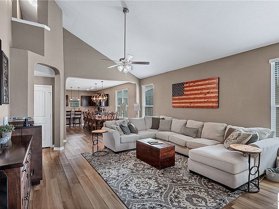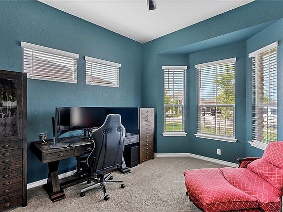 Like new four-bedroom/three-bath home is the popular "Hondo" floorplan. The primary suite shares the main floor with two other bedrooms, and an office perfect for working from home. The open floor plan is great for entertaining and hosting gatherings. The second floor offers a huge loft and en suite perfect for guests. The HVAC system has been upgraded and zoned to help keep constant or variable temp throughout the home. A list of more upgrades includes interior paint, ceiling fans, water softener, laundry cabinets, kitchen and dining lighting, and cabinet hardware. The community offers bike/walking trails, a pool, and a play area and is only a short distance from the home.