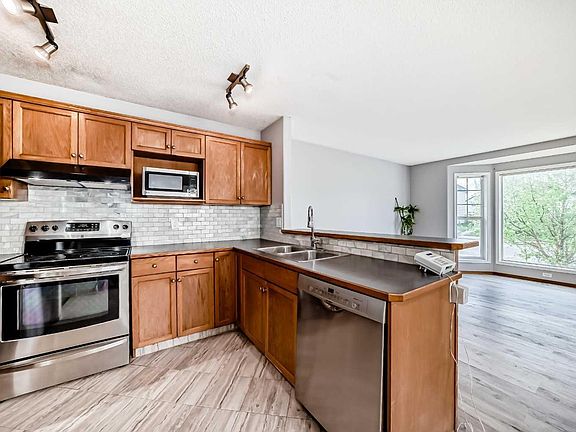 The sun-filled open-concept main floor features newer vinyl plank flooring and a functional kitchen with convenient bar seating—perfect for casual meals or entertaining guests. The lower level adds a cozy family room with a fireplace, ideal for relaxing evenings or movie nights.