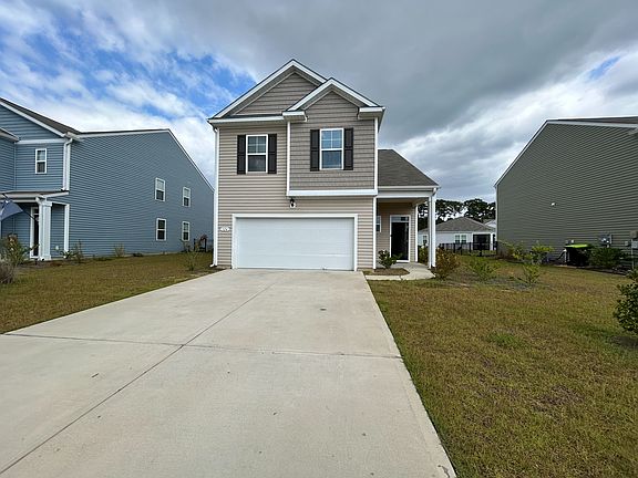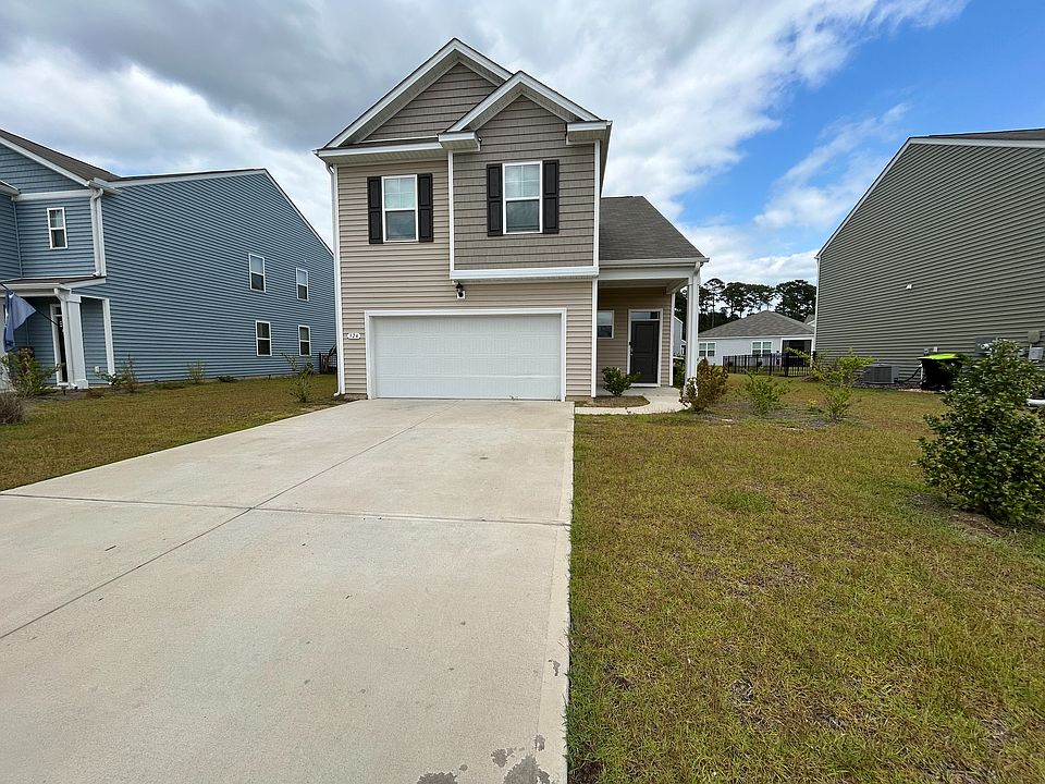 Welcome to this beautiful 4 bedroom, 3.5 bathroom home located in the desirable Island Green community of Myrtle Beach. Offering over 2,500 square feet of living space, this two-story home features an open-concept design with a spacious great room, a modern kitchen with stainless steel appliances, large island, and walk-in pantry. A flexible first-floor room can be used as a formal dining area, office, or den. The primary suite is conveniently located on the main level and includes a walk-in closet, double vanity, and walk-in shower. Upstairs you'll find additional bedrooms, a loft, and a large bonus room perfect for a media space, playroom, or extra living area. Additional highlights include a two-car garage, central air, and pet-friendly options. The fenced backyard is scheduled for completion soon, providing privacy and outdoor enjoyment. Island Green is close to shopping, dining, golf, medical facilities, and just a short drive to the beach. Zoned for the award-winning St. James school district, this home offers both comfort and convenience in a great location. One year or more is welcome! HOA fees are included in base rent.