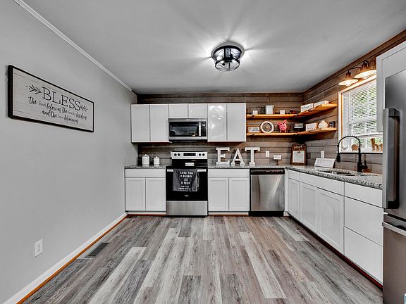 Welcome home to this beauty in Smokerise. This home has just been updated with new siding and windows. Home is located on an acre lot and has a large deck on the back and a great covered porch on the front. Flooring has been updated to LVP throughout. Kitchen has new cabinets and granite counter tops. Kitchen has all new appliances including refrigerator. Bathrooms have been updated with granite also. Master bathroom has a tile shower and 2nd bath has a tub with tile surround. Enjoy 1 car parking in the basement with plenty of room for storage. Schedule your showing today.