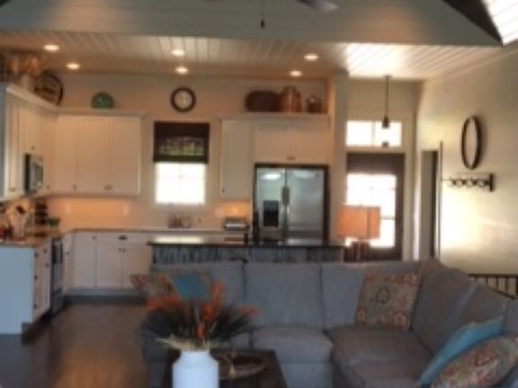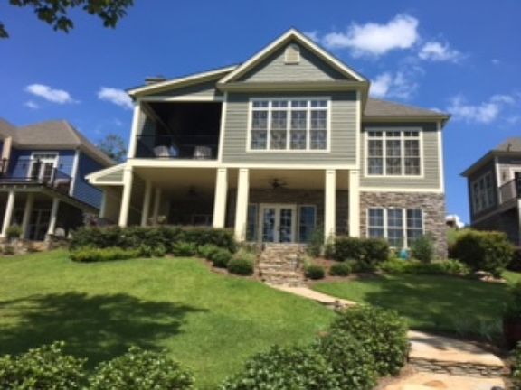 Beautiful custom built home with great lake views, large upper and lower outdoor spaces, custom cabinets, lower family room with wet bar and full size refrigerator, open concept kitchen, living room with vaulted ceilings and fireplace, large dining room, wood floors throughout,, outside porch with fireplace and TV, master bedroom and bath all on main level, downstairs has family room, 3 bedrooms , one with private bath, flex room and one additional bathroom, lower stone patio with TV , stone walkway to private dock with power and water. Subdivision has three pools, exercise room, chapel, boat ramp.