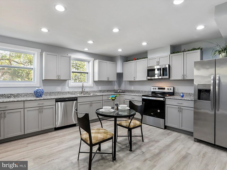 Welcome to this beautiful, fully renovated home, offering a seamless blend of modern upgrades and thoughtful design. From top to bottom, no detail has been overlooked in this complete interior gut renovation. The main level boasts a stunning, expansive new kitchen featuring: granite countertops, brand-new cabinets, a vented stainless steel microwave, and a full suite of stainless steel appliances and recessed LED lighting. A convenient laundry area includes washer and dryer hookups for added ease. Enjoy comfort and privacy with brand new low-E windows throughout the home, as well as 2 inch faux blinds, covering the living room and half bath windows. All rooms are fitted with recessed lighting. The living room and bedrooms includes a ceiling fan. The home retains its original character with preserved doors. Upstairs you'll find cozy carpeted bedrooms and two beautifully updated bathrooms with durable laminated, flooring. The spacious primary suite includes a private en-suite bathroom for your comfort. Modern mechanical upgrades include a new gas furnace for efficient heating and central air conditioning plus a Mini Split in each bedroom to keep the home cool during warmer months and heated during cold months. The property also includes a new water heater. The unfinished basement provides extra storage or customization options. Outside enjoy relaxing on the full length front porch, perfect for unwinding or entertaining. Roof is 4 years old. Property includes a detached garage in "as is" condition, requiring significant repair, offering potential for renovation or replacement. All renovation work has been completed with proper permits, giving peace of mind to the next proud homeowner.