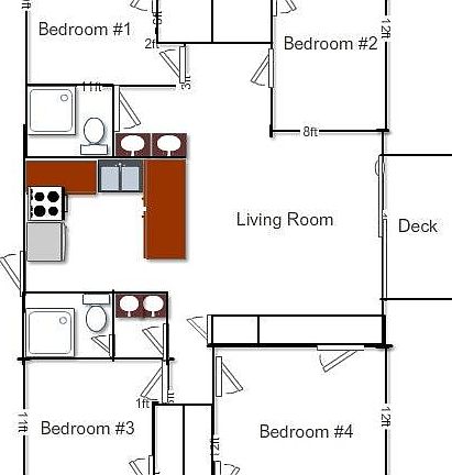 4 bedroom/2 bath in brick complex 1 block from the Engineering Mall.