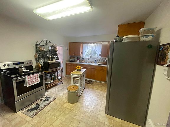 Charming and move-in ready single-story home! This updated home features beautiful hardwood floors, 3 bedrooms, 1 bath, a spacious kitchen, dining room, and an inviting living room. The clean, dry walkout basement offers additional living space with a family room, workshop, laundry area, newer water heater, updated electrical, furnace, plus plenty of storage. Exterior highlights include a durable metal roof, updated windows, and a brand-new garage. Enjoy the peaceful setting with abundant wildlife; deer, fox, bear etc, lovely views, and recreational trails and skiing. Home sits on a corner lot just minutes from Caspian and a short drive to Iron River. Taxes are not $0 and will change with sale.