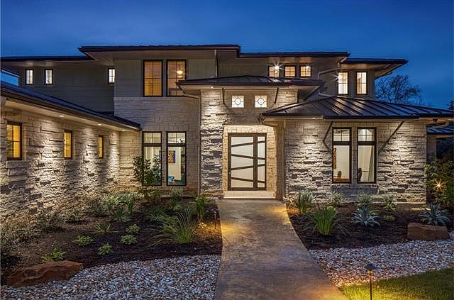 Custom Home in the Texas Hill Country with an elegant exterior design boasting salt-rubbed stained concrete,native plants, dark bronze metal roof and limestone. A custom cantera door opens to 40' of 10' glass walls framing lush green space and a custom outdoor living area cocooned in by lowering auto screens and that flows in/out through the pocketing glass wall. Custom kitchen cabinetry, granite dine-in bar & hand-scraped wood floors round out the heart of the home. Private Suite by the vast utility room offers space for in-laws or guests; secluded custom master suite with a bonus room off of the spa-esque bathroom. Master closet includes many custom features and built-ins. Views from every room, greenbelt behind house offers privacy and views of the hill country. Large upstairs game room with vast windows offering panoramic views; media room; great schools, minutes from conveniences. Outdoor living is invited through this custom design that perfectly blends the indoor and outdoor.