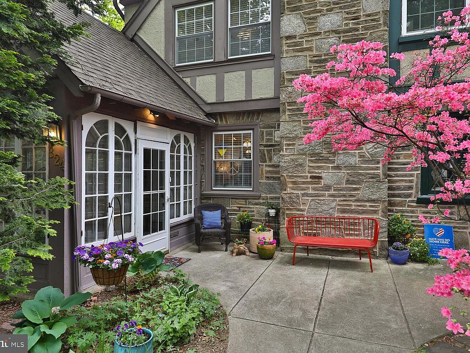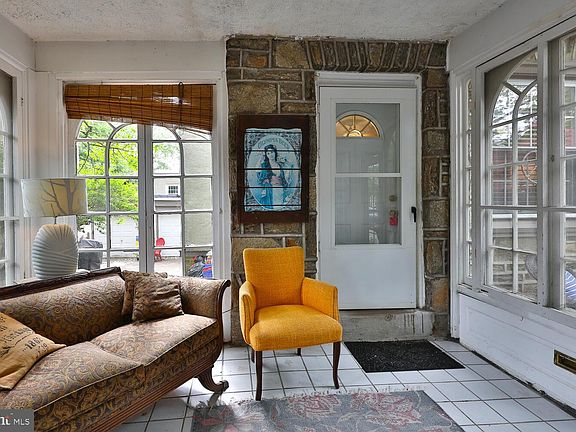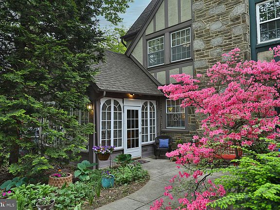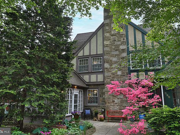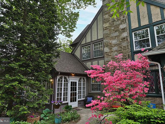 c. 1920s Tudor in West Mt Airy imparts lessons in scale, self-expression, and gracious refinement. Sometimes a house speaks for itself, and this one has a big voice. The distinctive glass-enclosed front porch opens to the living room with a stone fireplace (recently lined), a bright formal dining room in direct sunlight, and an updated kitchen with shaker-style wood cabinets, Corian counters and a walk-in pantry closet. Off the kitchen is a small deck with storage underneath and an enclosed patio. The first floor boasts beautiful, refinished oak hardwood floors with a ribbon trim. Up the recently carpeted stairs to the second floor, you find a large main bedroom (originally two rooms) with closets galore and a new Anderson door to a second-floor deck, your own private retreat with a spectacular view! There is also an updated hall bath and a second bedroom/home office on this floor. The third floor offers two more bedrooms with hardwood floors and a new tiled hall bath. The basement, with recently dashed walls, includes a clean, bright laundry space. There are also two radiators, making for a comfortable workshop or a ready-to-finish extra space. There is a newer 100-amp electric service, newer windows throughout, a newer mansard shingle roof (2011) with recoated flat main roof, a newer gas hot water heater, a new garage door and much more. This home has a genteel luxuriousness, classic and enduring but fresh and informed, and is situated on a beautiful West Mt Airy block umbrellaed by mature white Sycamore trees!!! Families with young children, couples, and singles, all are welcome to this block which stirs to life with the glossy color of blooms and plenty of urban energy!