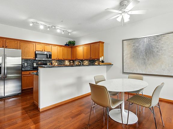 Welcome home! This beautifully updated townhome features stainless steel appliances, hardwood floors, and an open-concept main level with kitchen, dining and a living areas all flowing together. A refreshed half bath and access to the deck - overlooking greenspace and a park rather than other townhomes - make this level ideal for daily living and entertaining. Upstairs you'll find two spacious bedrooms, a laundry closet, and another updated full bathroom. The lower level offers direct garage access, a mudroom and a flexible bonus space for storage, a home office, or workout area. Unique to this unit are the rare perks: abundant parking and serene views form the deck. Recent upgrades include a new furnace, A/C, washer and dryer for peace of mind. Cable and internet are included in the HOA fee - a valuable an uncommon benefit. Beyond the home, enjoy a highly convenient location close to shopping, coffee shops, restaurants, walking paths, trails, and public transit, with quick access to downtown. A versatile home in a functional accessible setting - truly move-in ready!