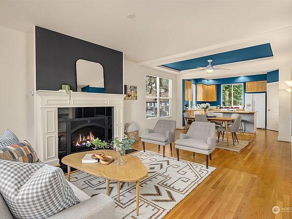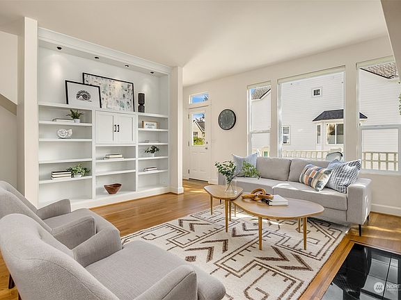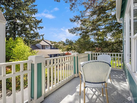 This townhome is located in the heart of town with easy access to all in-town amenities and the Seattle ferry. A perfect location tucked away in the back of this charming community with no attached neighbors. South sunlight floods the balcony and home with natural light and the private back yard is an oasis with a calming stream. Open floor plan with wood floors, gas fireplace, and built-in bookcases. Two upper level bedrooms with vaulted ceilings and a large bonus room with 1/2 bath on the entry floor. Attached private garage for additional storage. Living in town, yet in a quiet and calm setting - perfect!