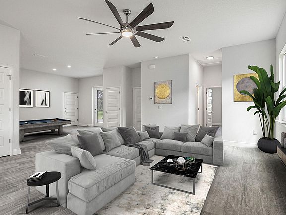 The new and improved Tradesman floorplan is here and finishing up very soon. Featuring a covered front porch which opens up to the Formal Living/Game Room area and a clear view across to the Open Concept Family Area and kitchen with formal dining. The home also Boasts Impact windows, tile living and wet areas, 9'4'' ceilings throughout, 5 1/4'' base boards, Stainless appliances and a long list of other luxury features standard! The Garage is approx. 50' Deep and 20' wide (HUGE) plus an additional 1 car spot on the inside. No more looking for double lot with the extra expense and maintenance. All the toys can fit here on ,41 acres. These homes have always sold before they were finished so call today before this one is sold too.