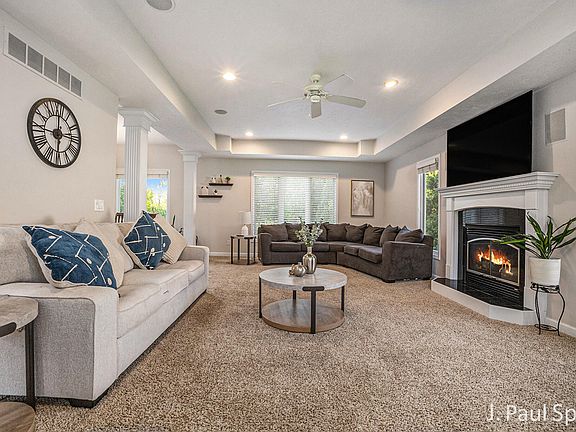 Welcome home to this stunning 4 bed, 3.5 bath retreat in a fantastic community with a backyard that backs up to Maple Hill Golf Course - No Neighbors behind you! This property truly has it all! Outside, your private oasis awaits. The incredible heated pool & patio area combined with an expansive backyard is perfect for relaxing or entertaining. As you step inside the foyer, you'll discover nearly 3,400 square feet of open-concept living space flooded with natural daylight. The main floor features striking high trey ceilings, adding an elegant touch, a kitchen with high end appliances, dining room & generous size living room with a fireplace for those cooler evenings. The lower level is an entertainer's dream, offering a beautifully appointed kitchenette with walk-out access, a spacious family room, fourth bedroom, & full bath. The driveway & 3-stall garage offer plenty of room for parking. Some updates include a newer A/C unit, new washer in 2025, & new shed in 2023.
