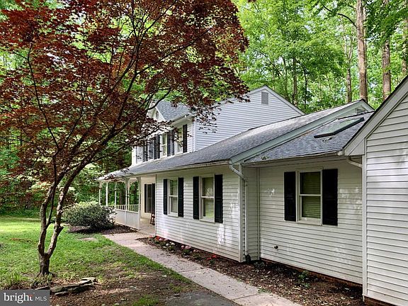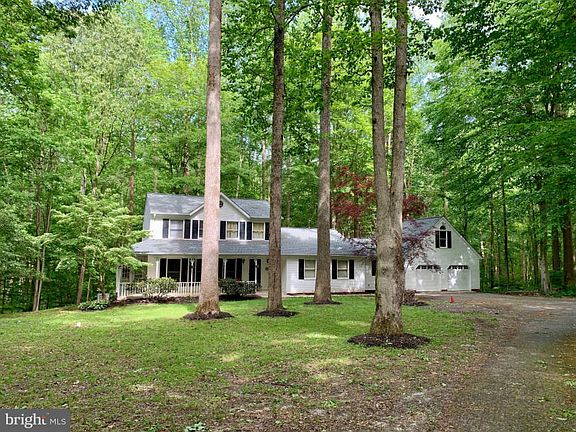 Spacious home on private wooded lot of over 5 acres. The home is freshly painted with new carpeting throughout. The main level features 1 of 2 master bedrooms with a luxury bathroom, a separate dining room and formal living room. The kitchen opens to the family room with a brick mantle and wood stove. Upstairs find an additional master bedroom with private, updated bathroom as well as 2 additional bedrooms. The basement is partially finished with exit to back yard featuring a large deck. The septic system was replaced in 2012. HVAC and Roof are both new!