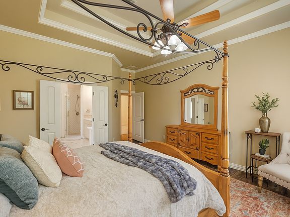 Step into luxury with this exquisitely crafted 4-bedroom, 3.5-bathroom home, sprawling over 3,094 square feet of refined living space. Every corner of this residence showcases meticulous attention to detail, ensuring an elegant blend of comfort and sophistication. The heart of the home features a kitchen with a cozy dining area, complemented by a formal dining room for grander gatherings. An expansive game room upstairs offers endless entertainment possibilities, complete with a charming balcony for serene outdoor moments. Enter through the stunning grand entryway at the front of the home, leading to an inviting and beautiful interior. The office, adorned with elegant French doors, provides a perfect retreat for work or study. The spacious primary bedroom invites you to indulge in its luxurious ensuite bath, complete with a relaxing jetted tub, dual vanities, a stunning stand-up shower, and an enormous walk-in closet that promises ample storage. Nestled on over an acre of beautifully landscaped grounds, this property is a sanctuary of tranquility and style, ideal for those who appreciate fine craftsmanship and exquisite design. Located in a beautiful community, residents enjoy access to a huge pavilion that hosts community events and is available for personal use. The community also boasts a pond and walking and biking trails, perfect for outdoor enthusiasts.