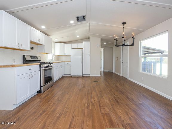 Beautifully renovated & move-in ready! 3- bedroom, 2-bath manufactured home offers 1,024 sq ft with an open-concept layout and split-bedroom floor plan. Enjoy peace of mind with a brand-new AC unit, fresh exterior stucco, new front steps, and updated skirting. Inside, you'll find new paint, dual-pane windows, ceiling fans, light fixtures, and stylish wood-like flooring with carpet in all bedrooms. The kitchen boasts new cabinets, a deep sink, and butcher block countertops, while both bathrooms feature new vanities, sinks, and mirrors. No HOA, fenced, with a refrigerator and shed included. Just 5 minutes from I-10, near the airport, schools, shopping, and dining!