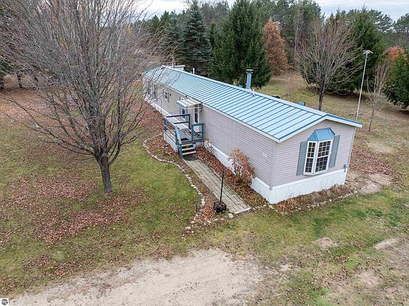 Extensively updated and well cared for, this 3 bedroom, 2 bath HUD home offers comfortable living on 1.3 acres just minutes from Interlochen amenities and summer concerts at Kresge Auditorium. Recent improvements include replacing all windows with new double pane windows in Sept 2025, a new well pump (2023), and a top-of-the-line iron filtration system for the well (2020) that works extremely well. In addition there is a new metal roof in 2017 with a 50-year transferable warranty, new furnace and water heater(2017), A/C (2019), The home also features a 50-amp exterior outlet for RVs, all new appliances (2017), and a wood-burning fireplace. Spacious bedrooms, an inviting layout, and a newly paved road add to the appeal. Outdoors, you'll enjoy a back deck over looking countryside views, garden area, young fruit trees including a Peach tree, Montmorency cherry, and Northern Spy apple. There are bluebird boxes around the property to add to the peaceful, nature setting. Affidavit of affixture on file. Welcome home!