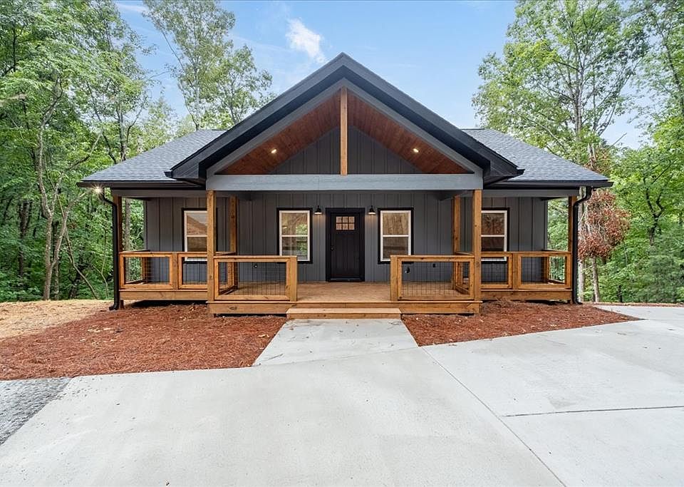 Brand new 3 bedroom, 2 bathroom home located inside the gated Coosawattee River Resort, just minutes from downtown Ellijay. This 1,200 sq ft home features an open floorplan, lots of natural light, and quality 2x6 construction. Enjoy a spacious kitchen with granite countertops, stainless steel appliances, and a tile backsplash. Both bathrooms are complemented with tiled shower/bath combos with modern finishes. Relax on the covered front and back porches, with medium-range mountain views off the back. The home sits on a paved driveway with a large parking pad for easy access and ability to turn around. Coosawattee offers amenities like gated security, indoor and outdoor pools, river access, fitness center, tennis courts, and more. Perfect for full-time living, vacation home, or short-term rental investment. Don't miss this move-in ready new build in one of Ellijay's most popular communities!
