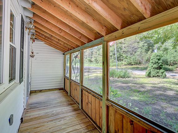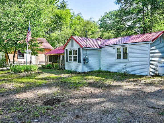 Enjoy one-level living in this converted four season cottage in Wakefield, that’s just waiting for new owners to make it shine! Enter the two bedroom, one bath home from the screened-in porch, a great spot to enjoy morning coffee bug-free! Stepping into the living room, you’ll find cathedral ceilings with rustic wood beams and a gas fireplace. The living room extends into the bright kitchen and dining area, which has modern light fixtures and sliders leading out to the back yard. The primary bedroom has beautiful wood-paneled ceilings and LVP flooring, while the other has a picture window overlooking the yard and woods beyond. The spacious full bathroom has been remodeled and conveniently includes laundry. The detached oversized one-car garage adds plenty of work space for your projects and lends extra storage. Small fenced in area would be perfect to contain your furry friend in line of sight while you lounge in the backyard overlooking the seasonal reservoir channel, which is home to several species of birds, ducks, fish, and otters. This home is conveniently located right around the corner from Belleau Lake, Province Lake, and Woodman Lake--and residents enjoy ease of access to area attractions such as the lakes, mountains, and seacoast region. This home does need some finishing touches to make it complete and is being sold to settle an estate. Property being sold AS IS.