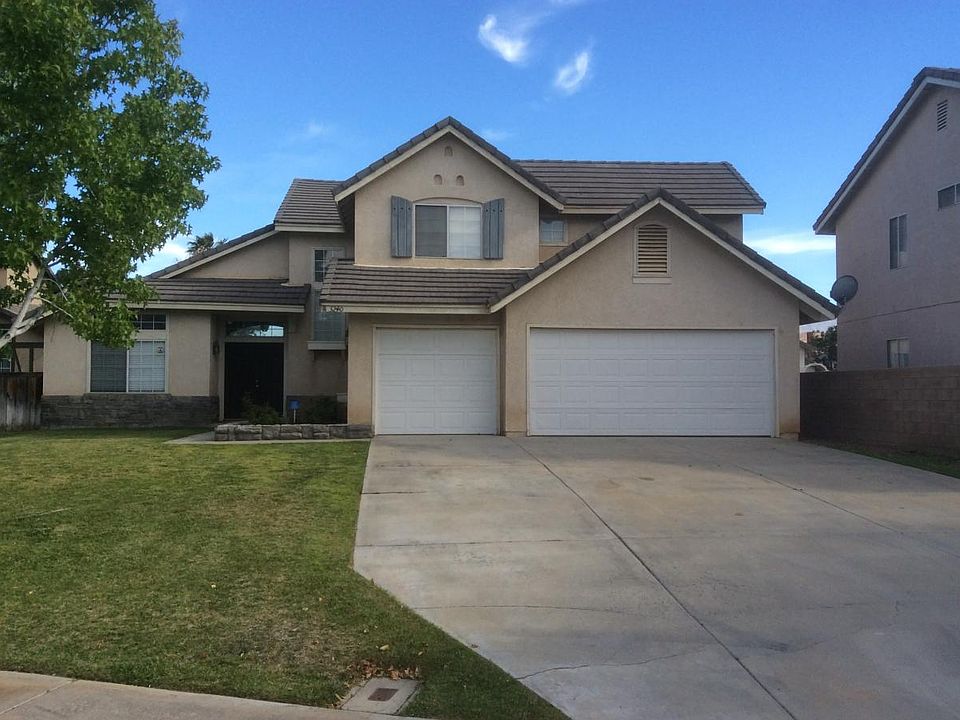 5 bedrooms and 3 bathrooms with 3 car garage.. Backyard has a small uncovered patio and sprinklers but no grass is planted due to water use needs. No utilities are provided and tenant must take care of front lawn.