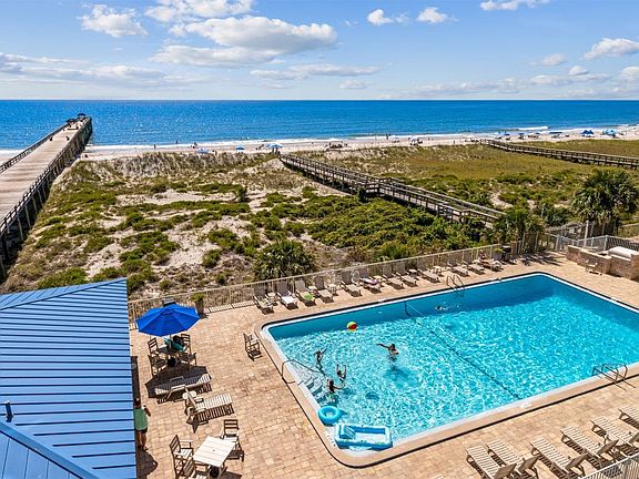 The primary suite features direct ocean views, a large walk-in closet, and an en-suite bath. Two additional bedrooms provide ample space for guests or a home office. Resort-style amenities include a private pier for fishing or sunset strolls, sparkling oceanfront pool, and tennis courts. Direct beach access puts sand and surf just steps from your door.