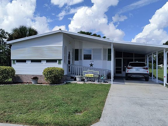 Tired of looking at mobile homes that just LOOK old? This lovely, CLEAN, fully equipped double-wide manufactured home in Melbourne, Florida, is located on a large lot in Lakewood Village. This solid, well maintained, manicured residence has two-bedrooms and two-bathrooms. It features laminate flooring through-out (no carpet that can TRIP you up!), and the home resides on leased land. You'll have plenty of breathing room since this large lot doesn't have other homes right on top of you! In addition to the generous size kitchen, double sink in the en suite master bath, skylights, cathedral ceilings throughout, indoor laundry room with washer and dryer which stays, there's a custom roll-up garage door on the shed for easy drive in and out on your golf cart! Plus, home comes with Ring cameras with established Alexa connection which will announce arriving guests before they come to your door... a great security perk! In addition, there's a 3 zone irrigation system, tilt windows for easy cleaning in the Florida room, outdoor motion lights in the front and back, and a hardwired whole-house GENERATOR. Own your home at a 1/4 of the price that real estate is going for in Brevard county without property taxes nor HOA's!! Who could ask for anything more?!! In other words, this home has ALL the essentials covered and more! Pets are welcome! Come see it for yourself - call to schedule your personal tour today! Lakewood Village offers a spacious clubhouse, well equipped fitness center, a nice game room, shuffleboard courts, and a community swimming pool. Also, on-site management, laundry facilities, and RV storage add peace of mind, and community organized activities keep you involved. Buyer responsible for verifying lease costs, securing park approval for residency, and reviewing community rules with the office which is open Monday thru Friday, 9 a.m. to 5 p.m.
