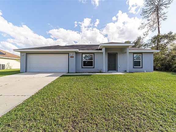 This beautiful 2020-built home offers a perfect blend of elegance and coziness. Inside, you'll be greeted by vinyl floors and vaulted ceilings, creating a bright and inviting atmosphere. With 3 bedrooms, 2 bathrooms, and an attached 2-car garage, this concrete block and stucco home features: Granite counters in the kitchen and bathrooms, Walk-in master bedroom closet, 0.23 acre lot in Marion Oaks. The open concept and split bedroom floor plan offer ample space and privacy, making it ideal for relaxation and entertainment. Enjoy outdoor activities and create your own private retreat on your expansive property. This home is conveniently located in Marion Oaks near amenities, with easy access to shopping, dining, and entertainment options. As a newer home, it offers modern features and construction quality. Don't miss out on the chance to see this home - schedule your showing today!