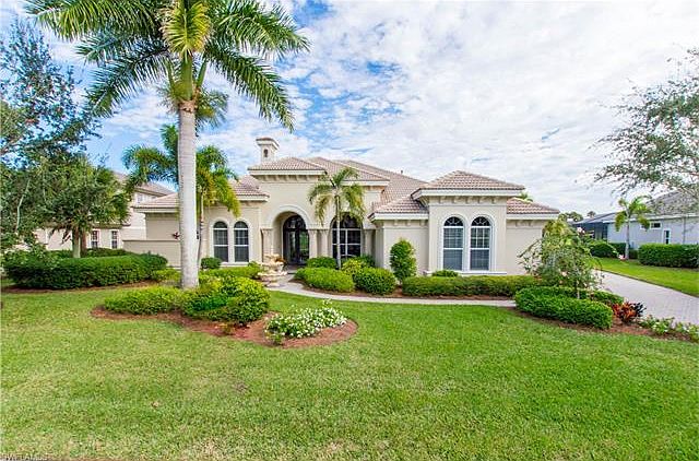 The square footage price of this home has been reduced below what condos are selling for. THE BUYER NEEDS TO MOVE! One of Arthur Rutenberg Luxury Custom Homes finest! This exquisite home features the best of southwest Florida indoor/outdoor living. The front elevation is stately and has a fountain and grand Cantera doors. The interior features a formal living area with marble fireplace overlooking the pool. The family room/kitchen is the desired open floor plan and has a built in wall unit. There's a wet bar area with wine cooler and a formal dining room. The library features hardwood built-ins and there's a large game room/bonus room. The master suite is opulent and features a grand ensuite. Prefer outdoor living? The lanai is huge and has an outdoor kitchen and fireplace for cozy el fresco dining. There's a beautiful pool and spa and the whole lanai overlooks large water and the golf course. Verandah has two championship golf courses, casual and fine dining, 9 miles of bike paths, kayaking, tennis, organized activities with a director, large fitness center with lots of classes and a dog park. Verandah has that Old Florida feel with meandering streets & Mossy Oaks.
